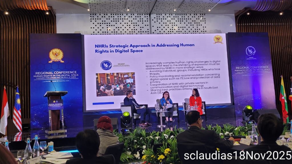 Jakarta, 18 November 2025 – PUSHAM UBAYA melalui Ketua Pusat Studi Hak Asasi Manusia turut hadir dalam South East Asia National Human Rights Institution Forum (SEANF) Regional Conference 2025 yang diselenggarakan oleh Komisi Nasional Hak Asasi Manusia (Komnas HAM) Republik Indonesia di Le Meridien Jakarta. Kegiatan ini mengangkat tema “Human Rights in the Digital Space: Emerging Challenges and the Role of NHRIs”.