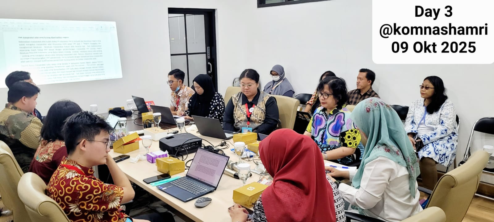 Sebagai penutup kegiatan, pada hari ketiga seluruh mahasiswa peserta pelatihan diberikan ruang untuk memaparkan opini dan gagasan mereka melalui presentasi yang mengangkat berbagai isu aktual HAM di Indonesia. Kegiatan ini menjadi wadah ekspresi kritis sekaligus kontribusi nyata dari mahasiswa dalam mendorong pemajuan HAM. Seluruh opini yang dipresentasikan kemudian diunggah oleh masing-masing peserta melalui akun Komunitas Pegiat HAM di laman Data HAM milik Komnas HAM RI, sebagai bagian dari upaya berbagi pengetahuan dan memperluas jejaring pegiat HAM di Indonesia.